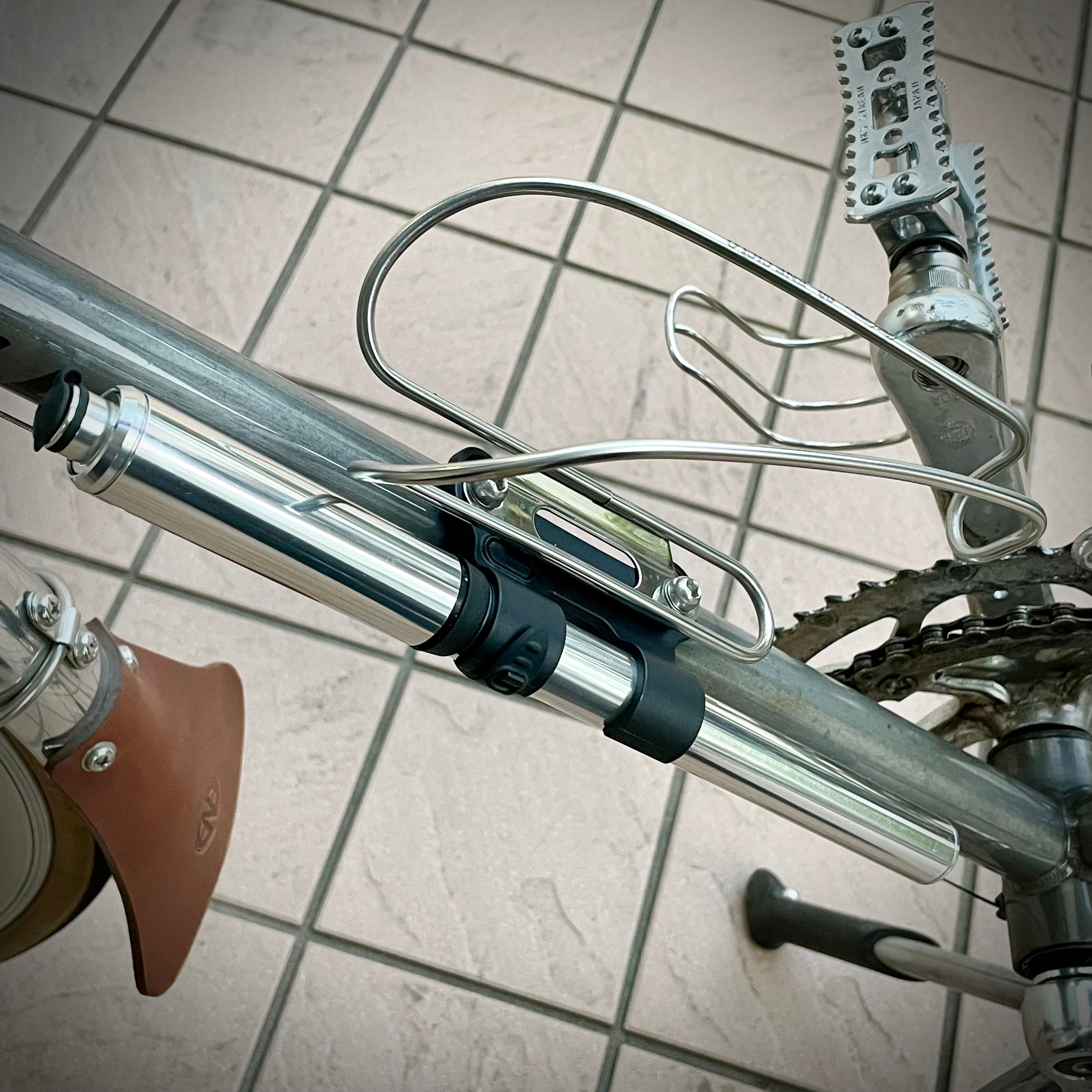 スチールのミニベロにピッタリ合うサイズ感で、持ち運びも楽々です。仏式と米式の両方のバルブに対応しており、空気圧の上限は120psi。緊急時のパンク修理やサイクリング中の空気補充に最適なハンディポンプです。