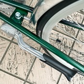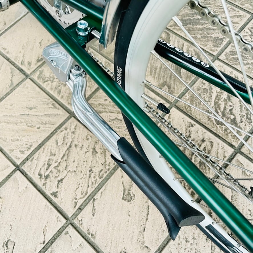 重量は少々重たくなりますが、丈夫な2本脚による高い安定性、走行時にはチェーンに干渉しない左側にまとまって収納される機能性は、なかなかの完成度を誇ります。